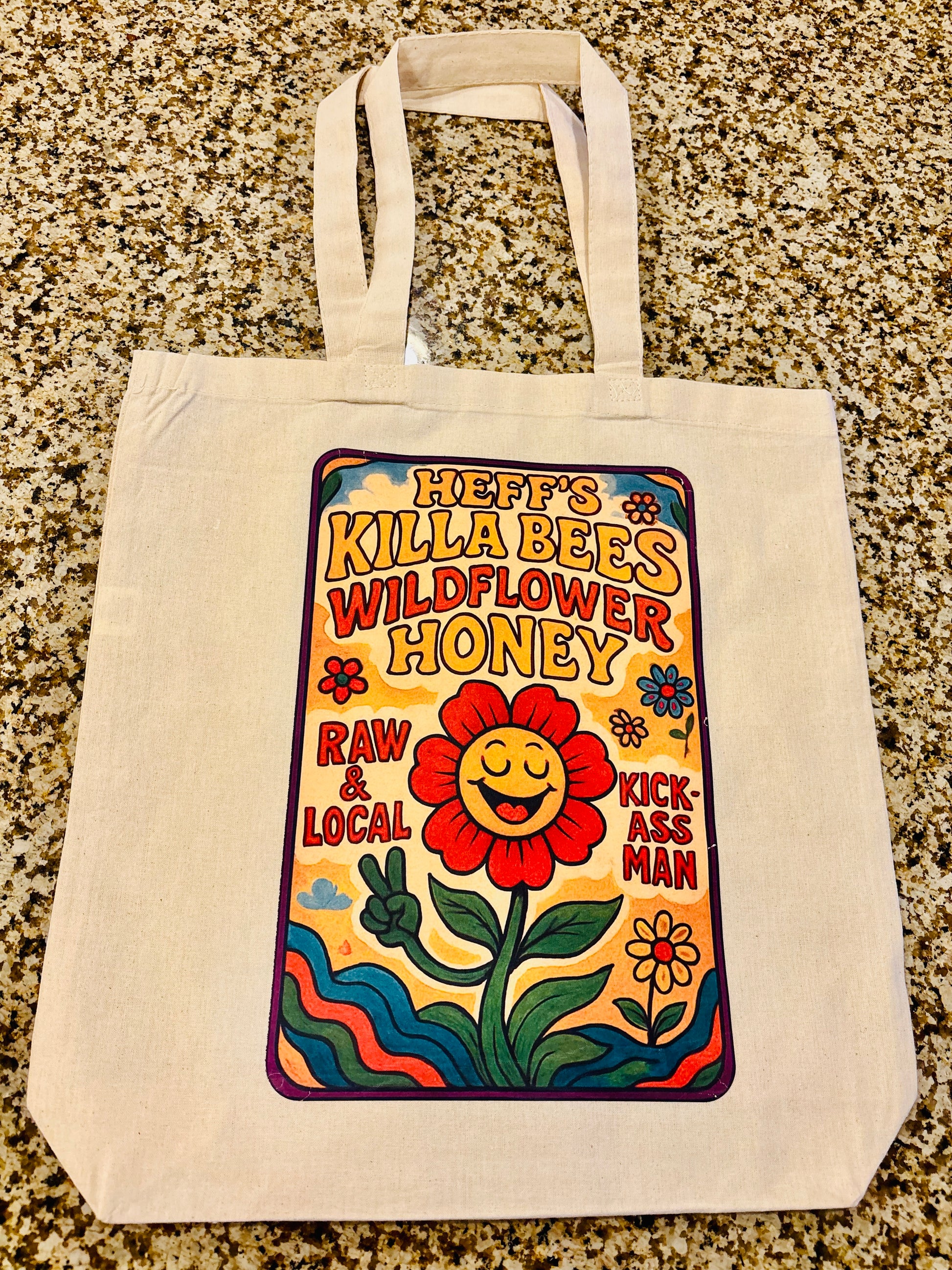 Now that we got that song in your head, what's cooler that cool is our NEW canvas tote bags adorned with our bright, vibrant Killa Bees designs.